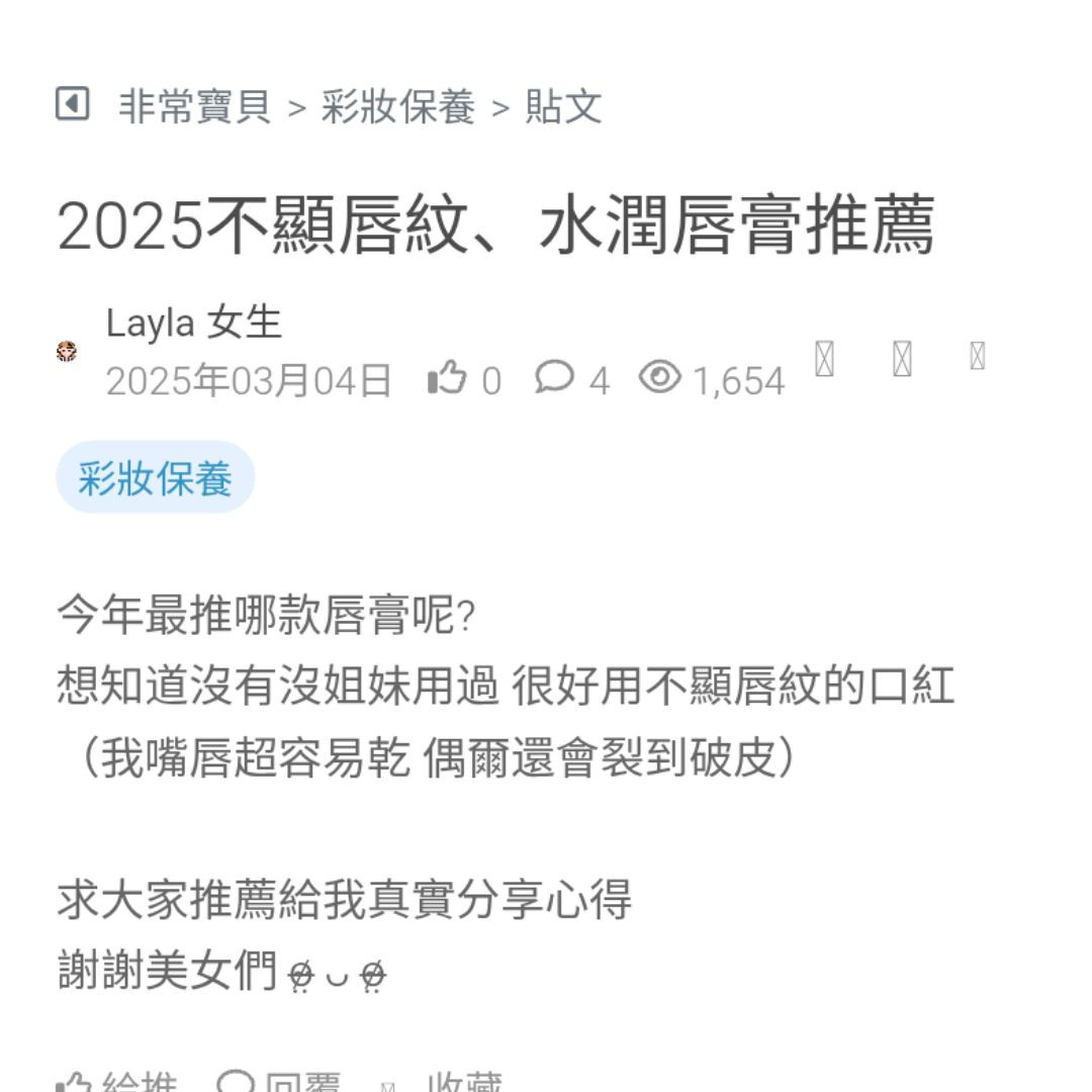 最近嘴唇大乾裂 摸一下乾皮都掉下來⋯ 可能是換季的緣故+天氣乾冷 現在好需要比較滋潤的唇膏 請問大家都擦什麼呢 看更多
