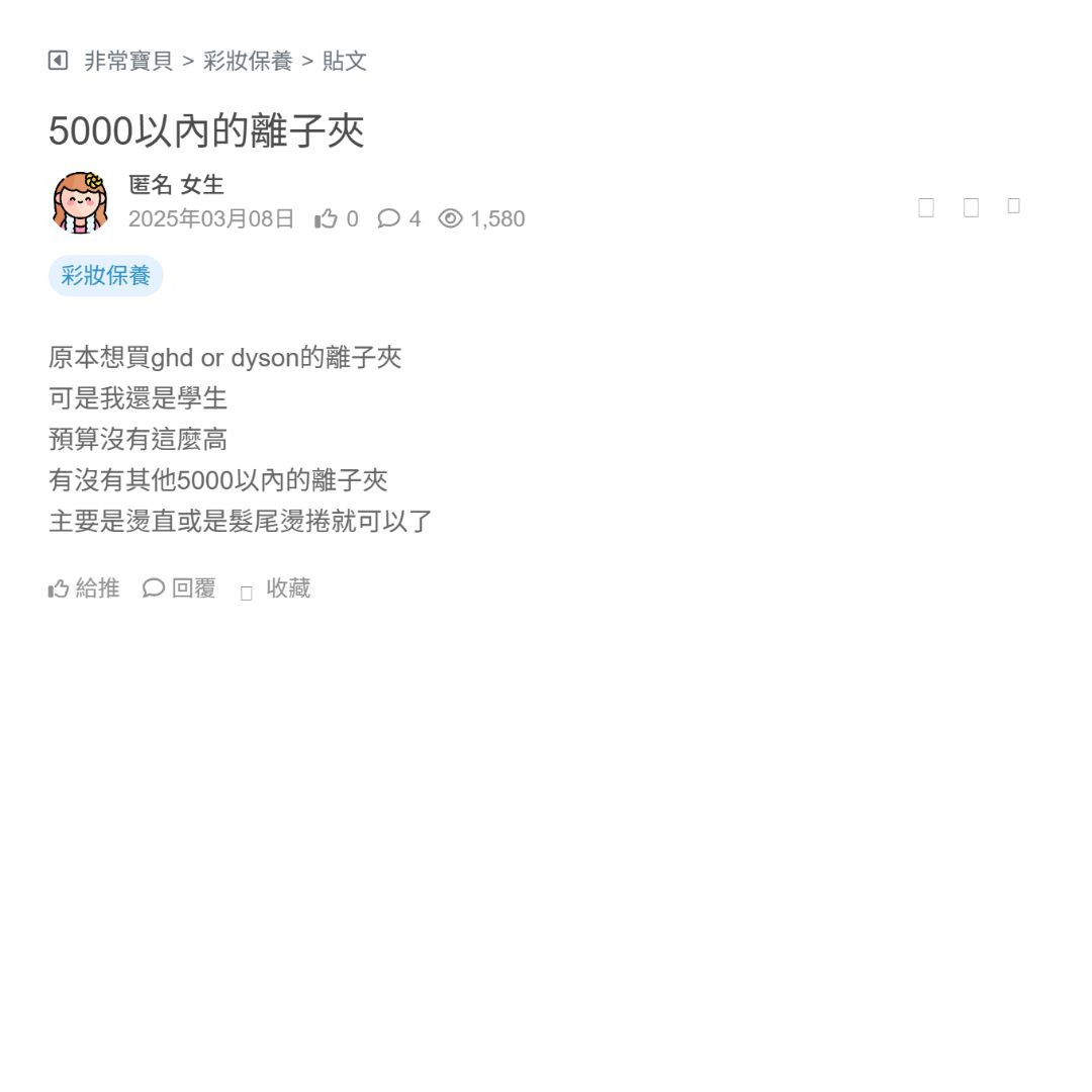 我自然捲超級嚴重 沒有用離子夾真的不敢出門 但又不想每天用很傷髮質 偶爾去給設計師燙髮一趟又要很多錢 現在髮廊都超貴..... 有好用的離子夾可以推薦我嗎? 萬分感恩 🫶 看更多