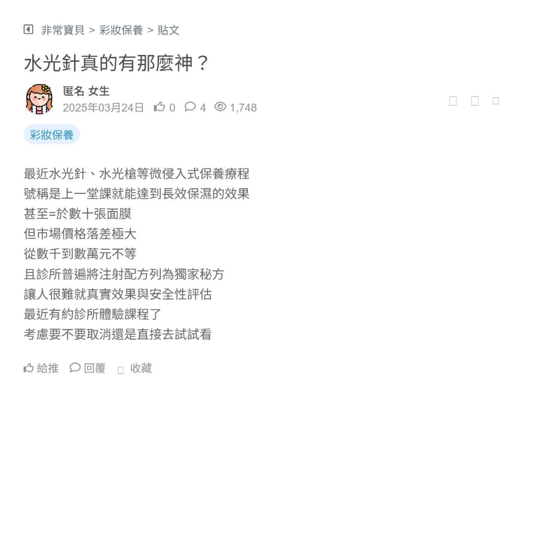 剛打完水光針,醫師說可以維持半年,但才兩週就感覺沒什麼效果