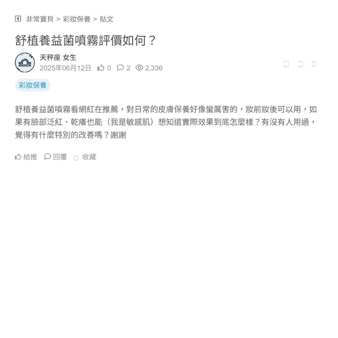 舒植養益菌噴霧看網紅在推薦,對日常的皮膚保養好像蠻厲害的,妝前妝後可以用,如果有臉部泛紅、乾癢也能(我是敏感肌)想知道實際效果到底怎麼樣?有沒有人用過,覺得有什麼特別的改善嗎?謝謝