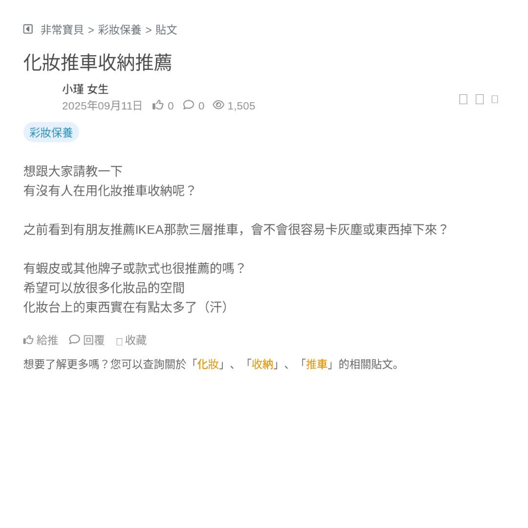 有沒有人在用化妝推車收納呢?