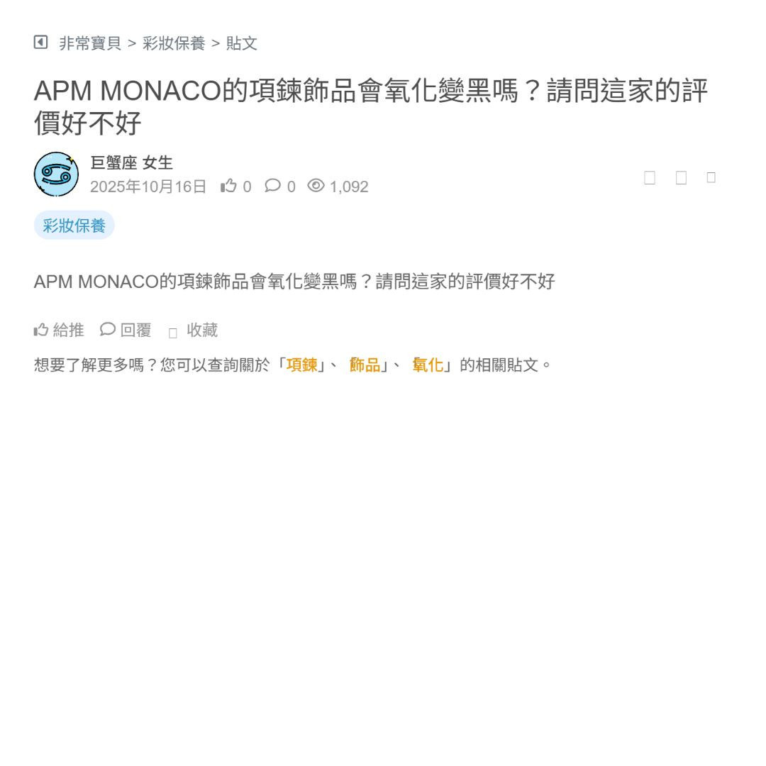 APM MONACO的項鍊飾品會氧化變黑嗎?請問這家的評價好不好