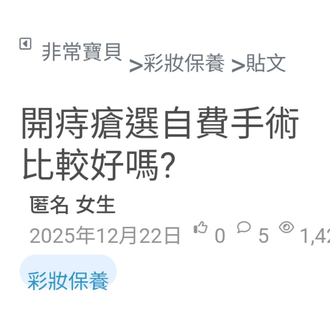 我媽她其實已經被痔瘡 困擾一段時間了 只是一直很害怕動手術 聽說術後會蠻痛的 看完之後其實會有點替她擔心 另外我也有點在意 就是不知道 之後會不會又容易復發 畢竟誰也不想反覆受罪 想請問有經驗的人實際狀況 讓我們可以多一點參考 看更多