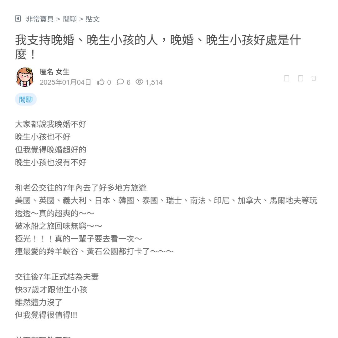 我支持晚婚、晚生小孩的人,晚婚、晚生小孩好處是什麼!
