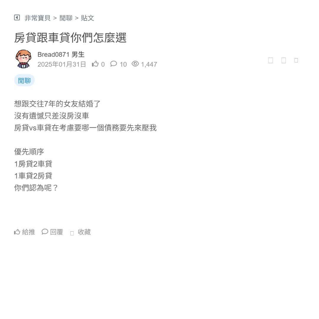 房貸vs車貸在考慮要哪一個債務要先來壓我