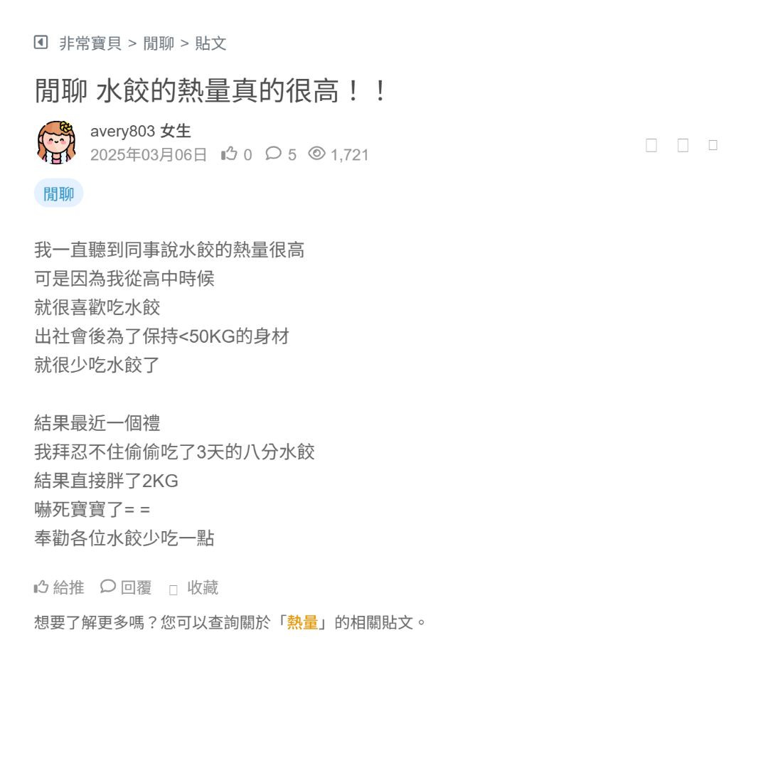 原PO很瘦 應該戒水餃後馬上瘦回來
