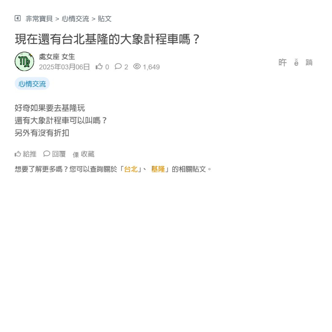 現在還有台北基隆的大象計程車嗎?