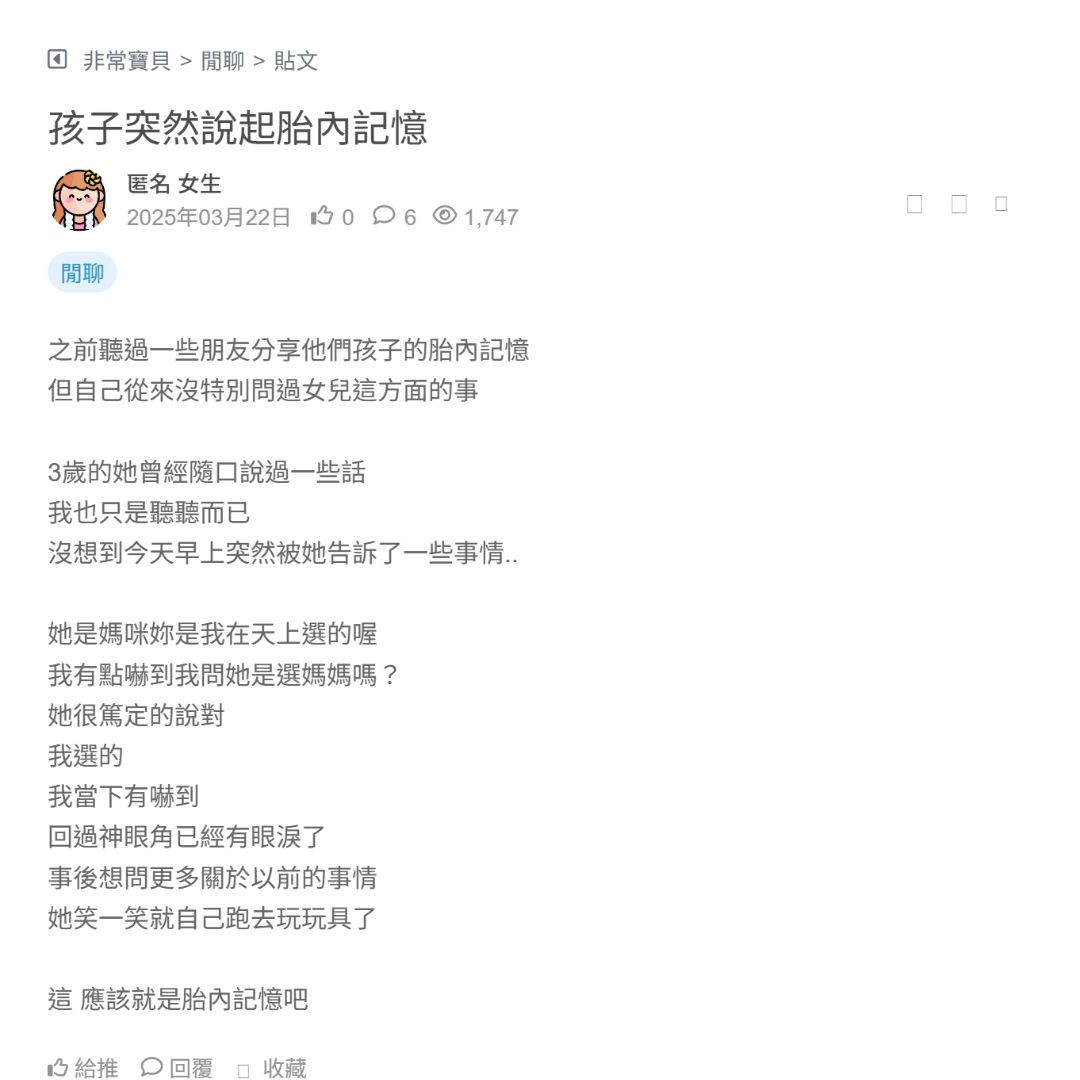 之前聽過一些朋友分享他們孩子的胎內記憶