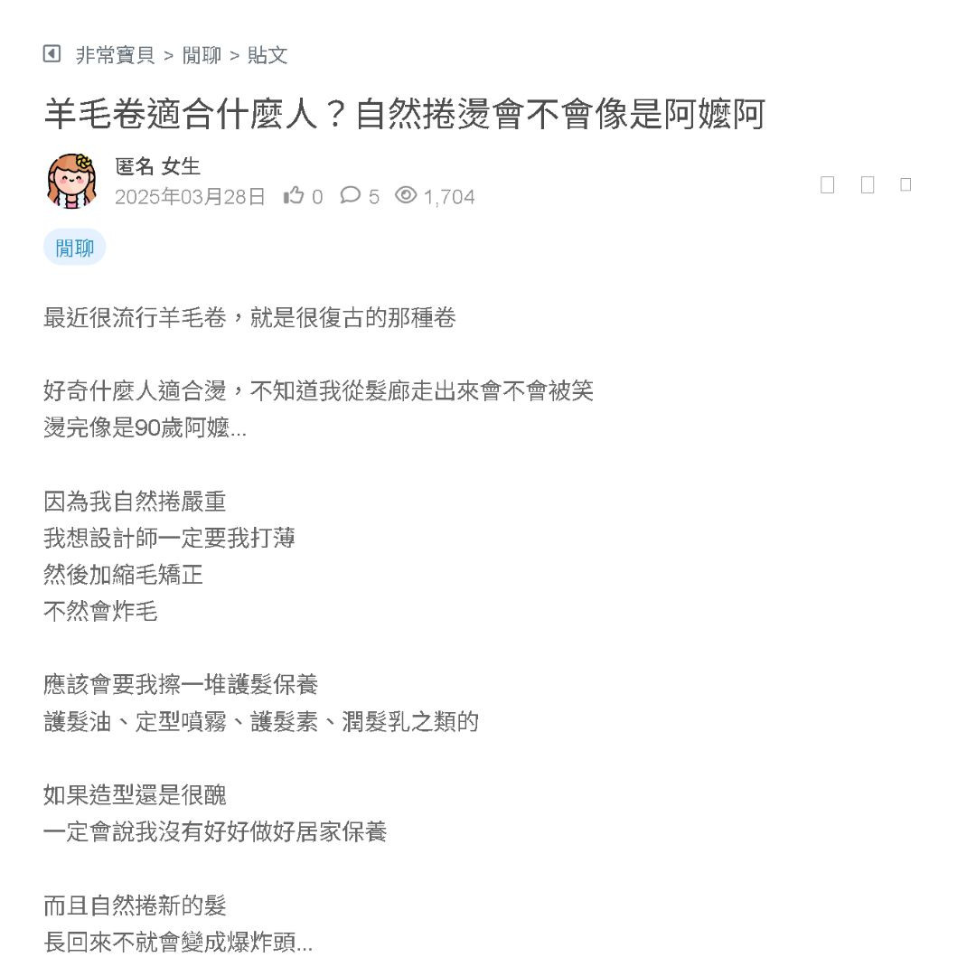 羊毛卷適合什麼人?自然捲燙會不會像是阿嬤阿