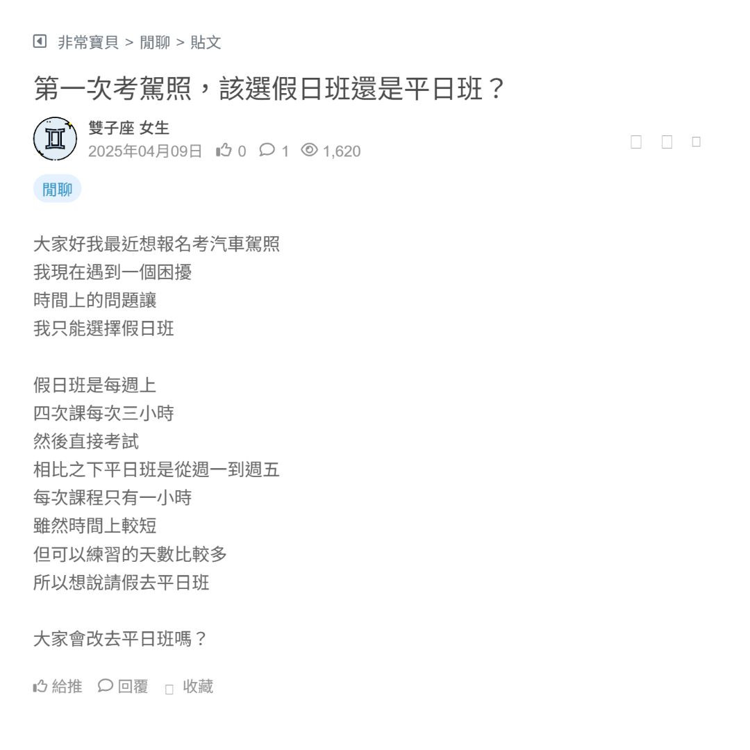 第一次考駕照,該選假日班還是平日班?