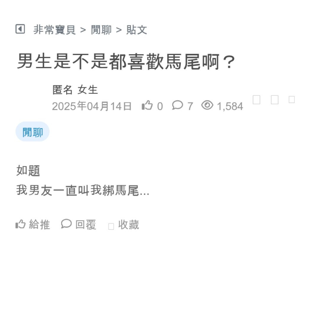 很多男生都是馬尾控欸…