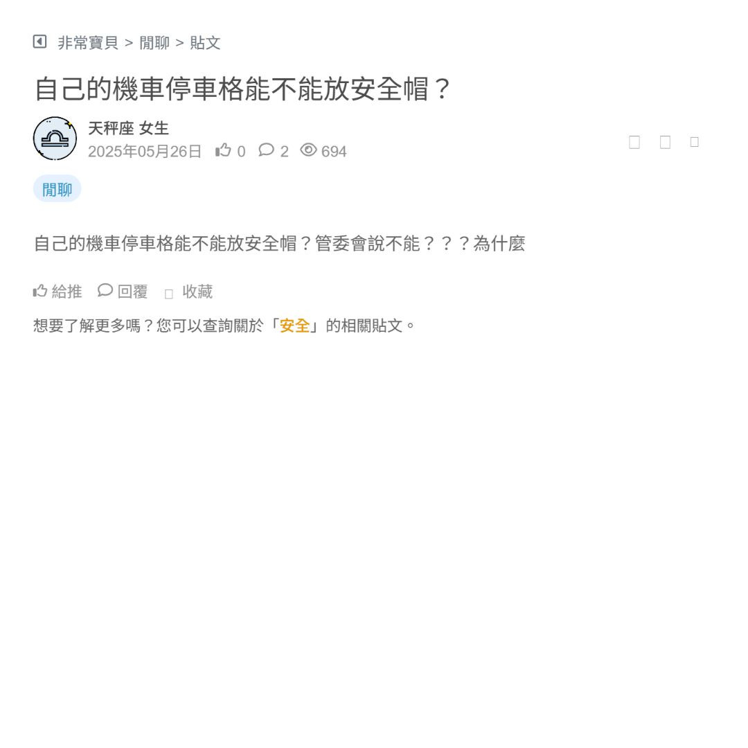 自己的機車停車格能不能放安全帽?管委會說不能???為什麼
