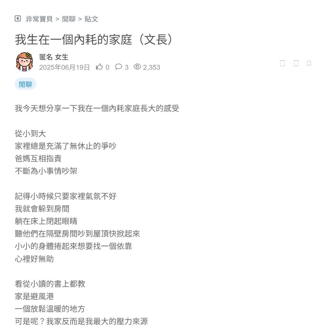 我今天想分享一下我在一個內耗家庭長大的感受