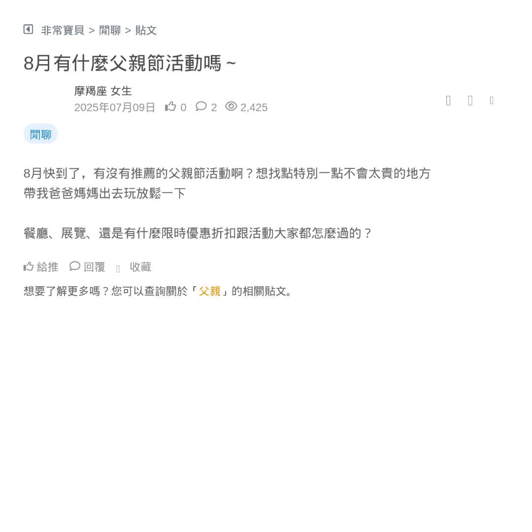 8月快到了,有沒有推薦的父親節活動啊?想找點特別一點不會太貴的地方