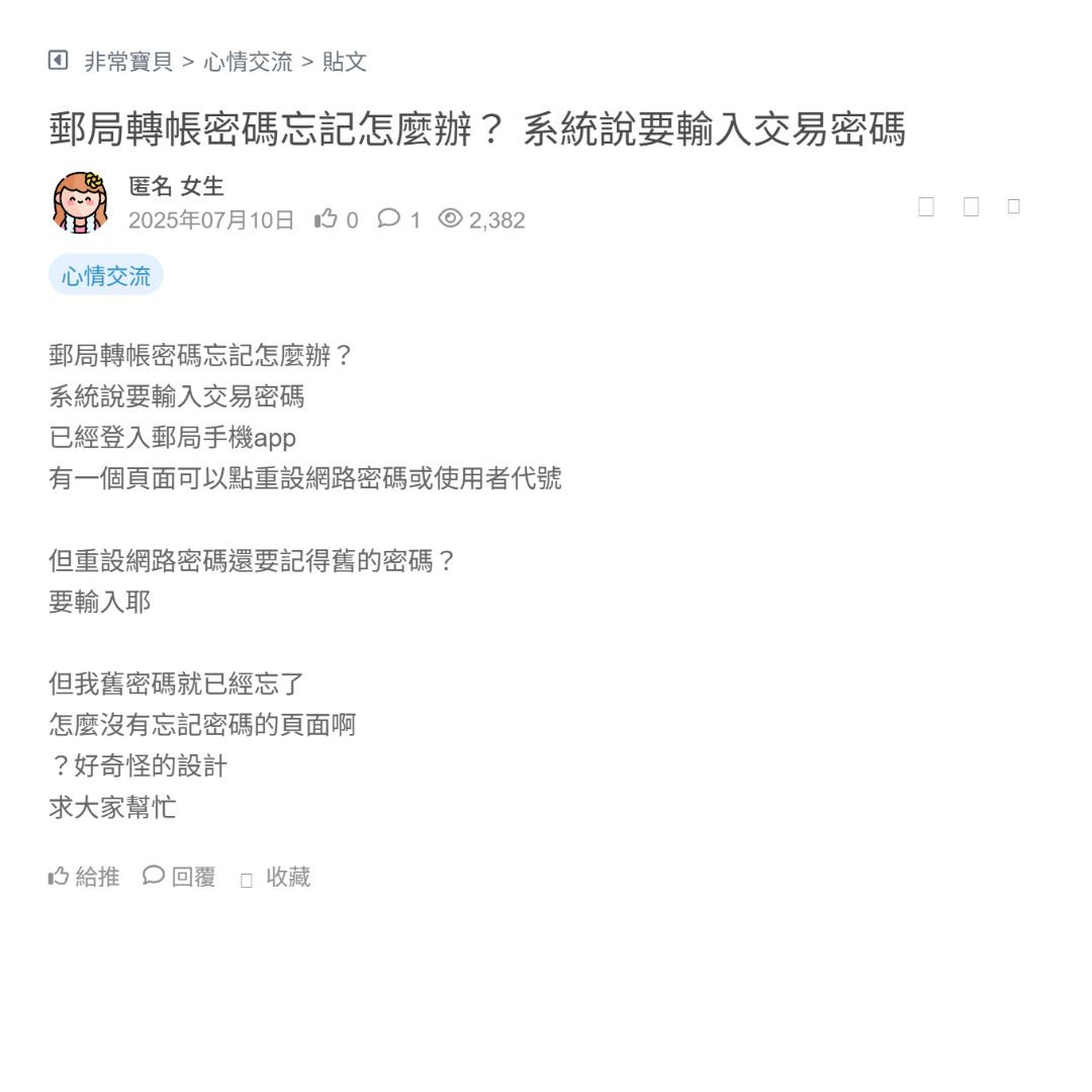 郵局轉帳密碼忘記怎麼辦? 系統說要輸入交易密碼