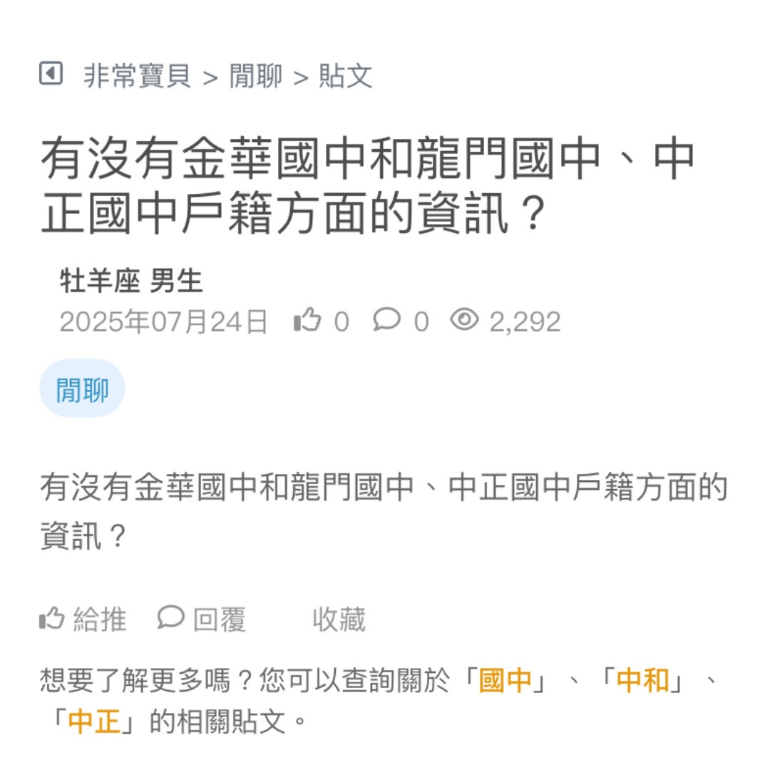 有沒有金華國中和龍門國中、中正國中戶籍方面的資訊?
