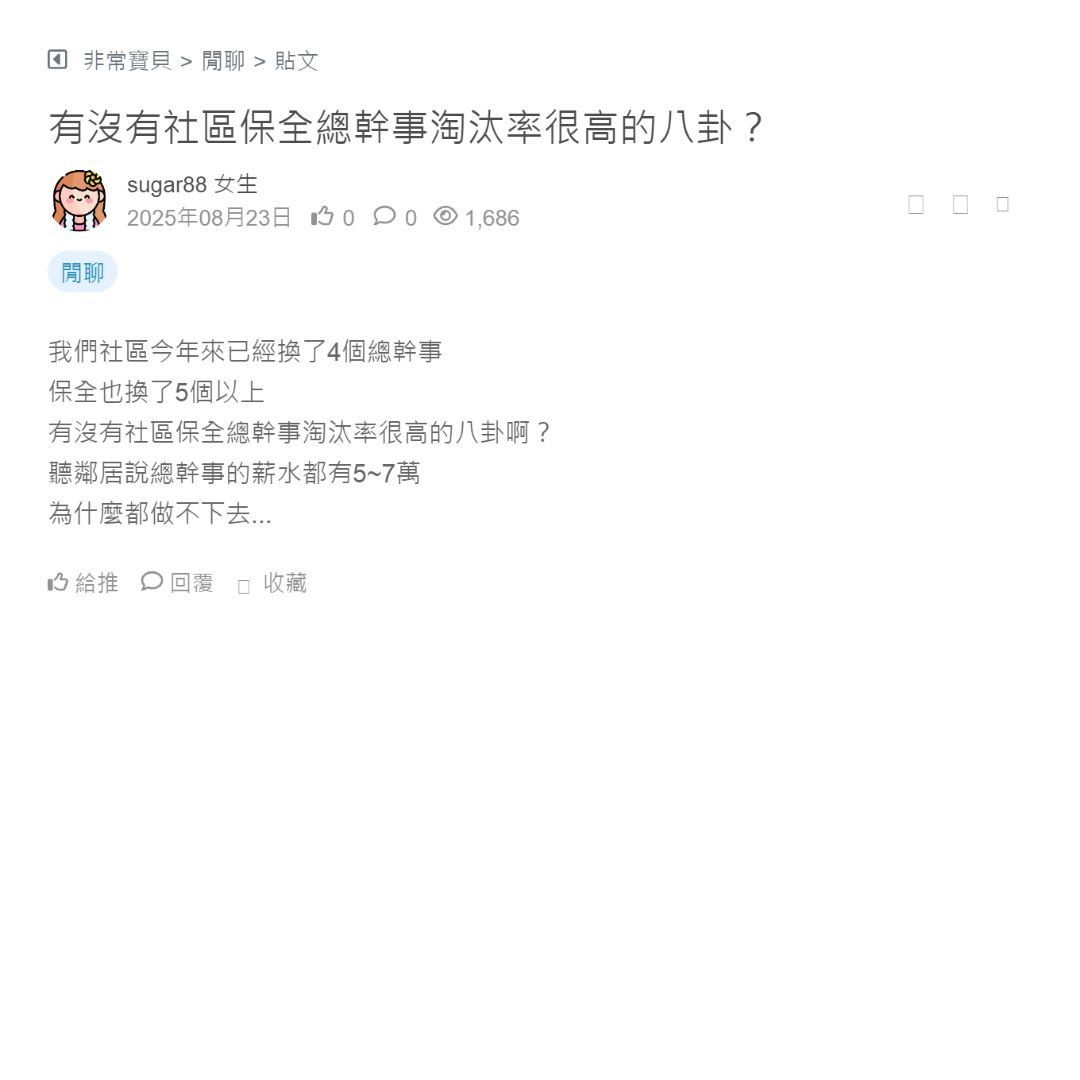 有沒有社區保全總幹事淘汰率很高的八卦啊?