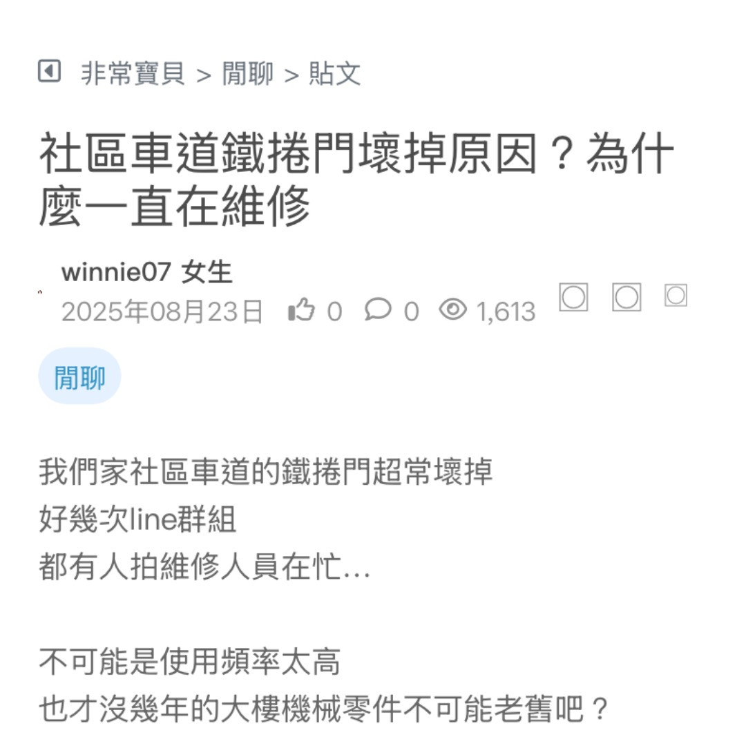 這裡想問大家社區的車道鐵卷門10年壞幾次?5年壞掉幾次?