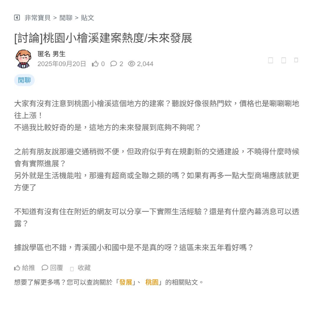 大家有沒有注意到桃園小檜溪這個地方的建案?聽說好像很熱門欸,價格也是唰唰唰地往上漲!