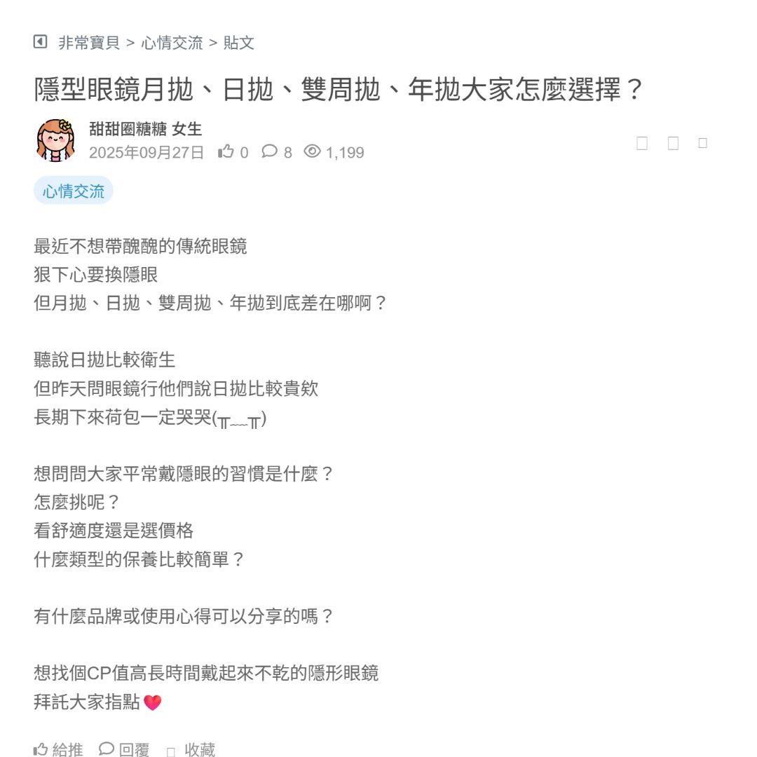 隱型眼鏡月拋、日拋、雙周拋、年拋大家怎麼選擇?