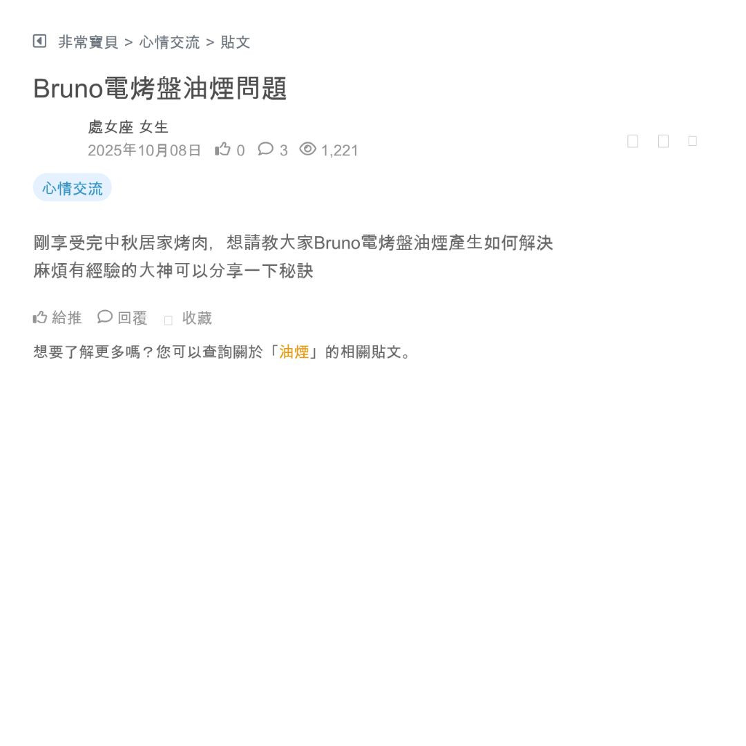 Bruno電烤盤油煙問題