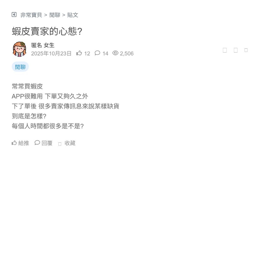 蝦皮下單慢還會被賣家說缺貨