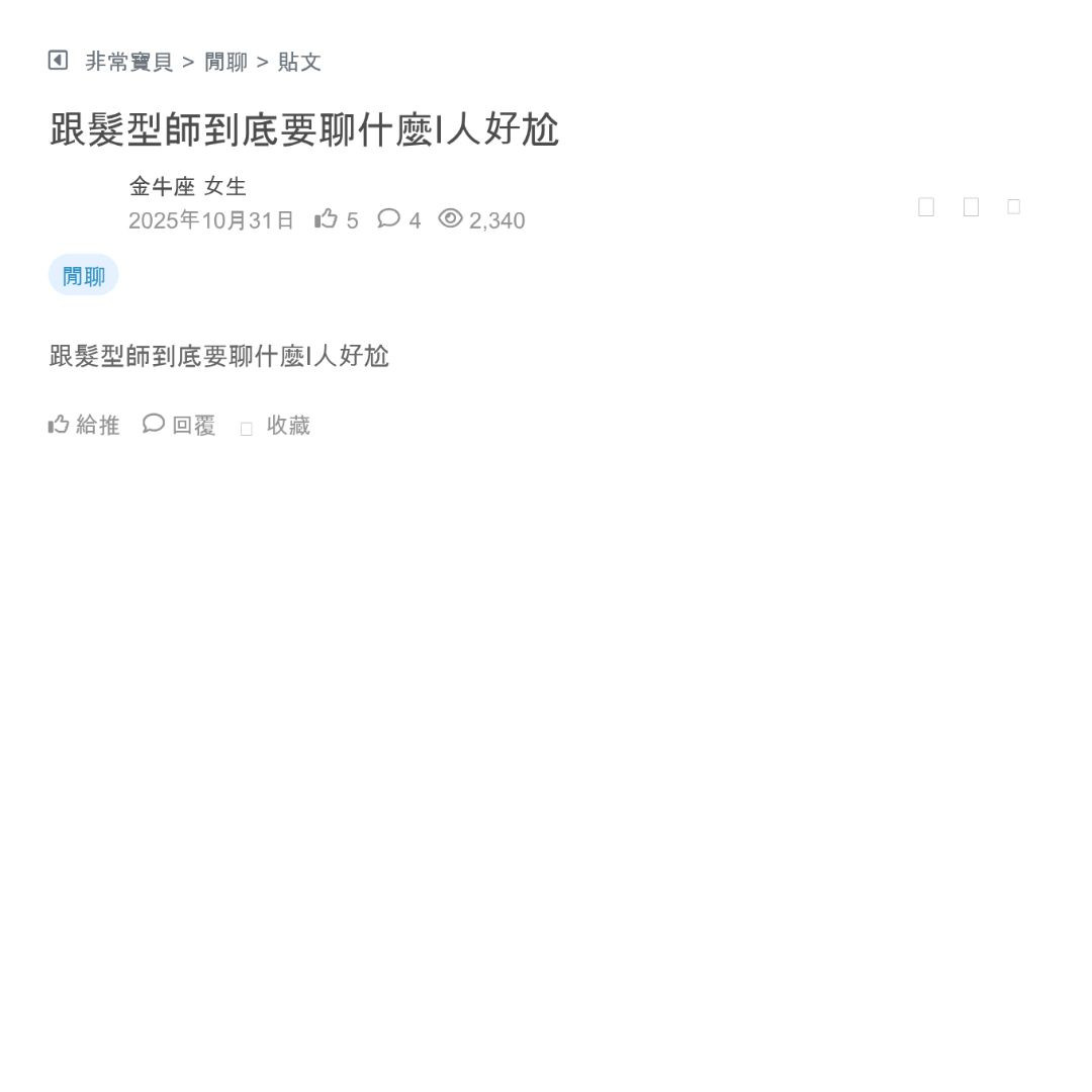 沒有特別想I人就希望髮型師剪髮、洗髮、護髮、燙髮的時候可以都閉嘴🤫這樣