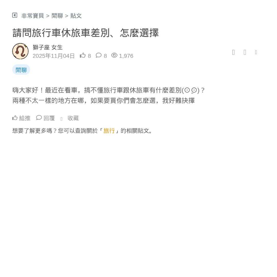 嗨大家好!最近在看車,搞不懂旅行車跟休旅車有什麼差別(⊙ˍ⊙)?