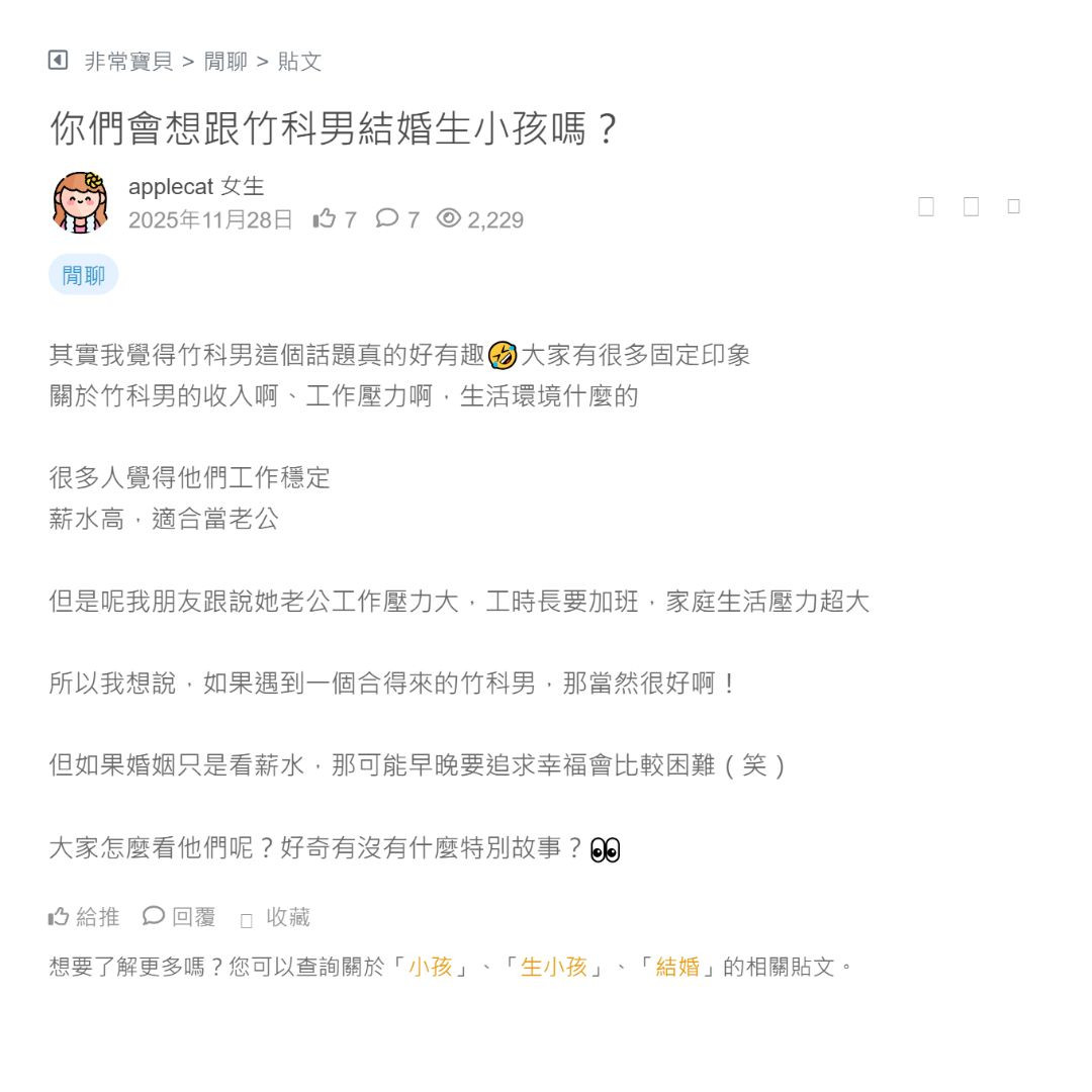 其實我覺得竹科男這個話題真的好有趣🤣大家有很多固定印象