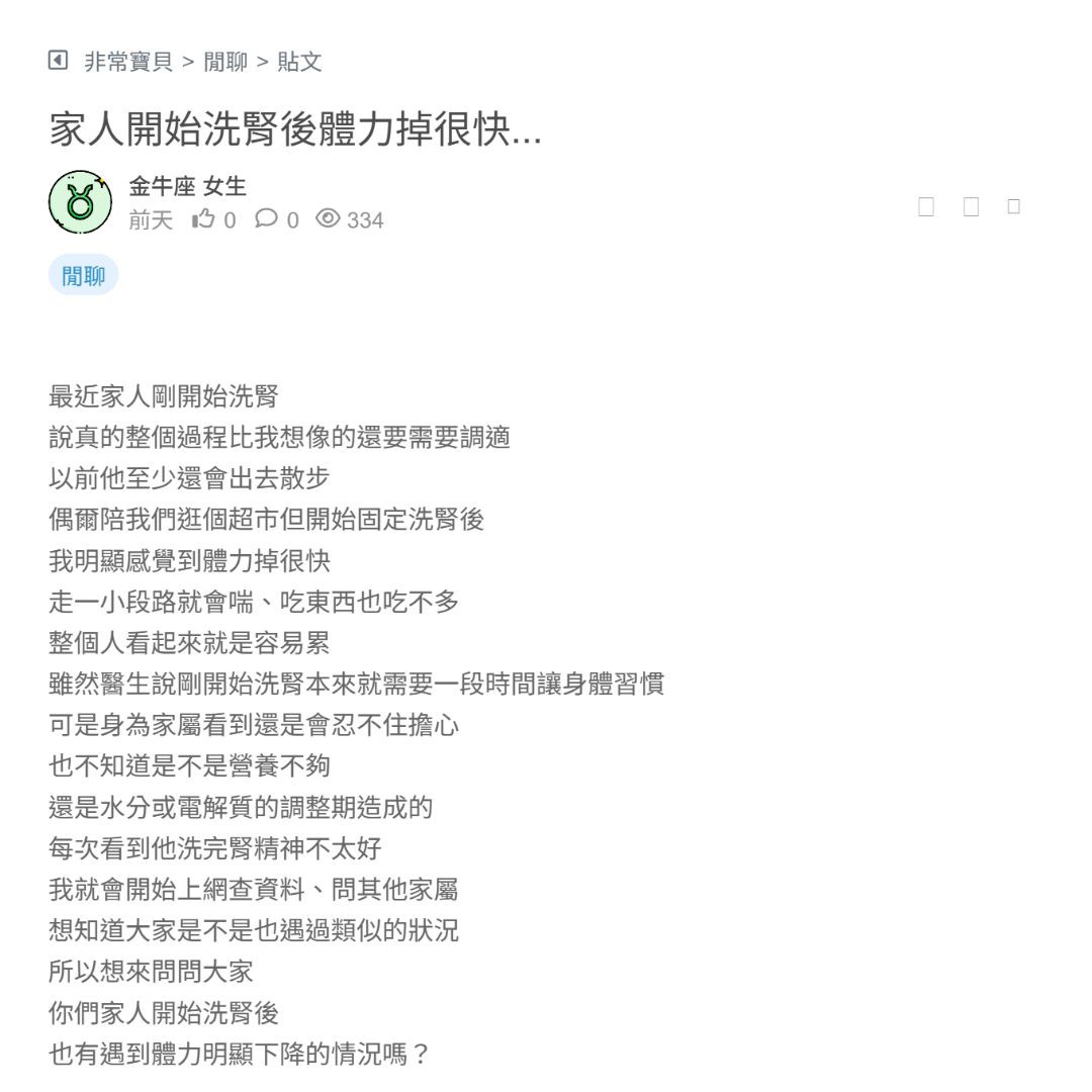 雖然醫生說剛開始洗腎本來就需要一段時間讓身體習慣