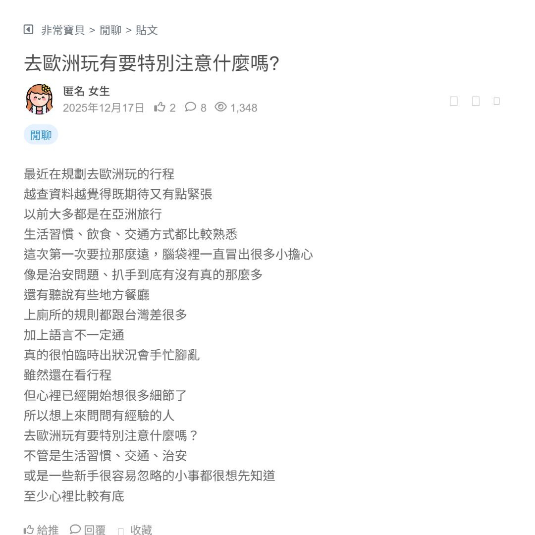 我第一次去歐洲前,其實心情跟你差不多