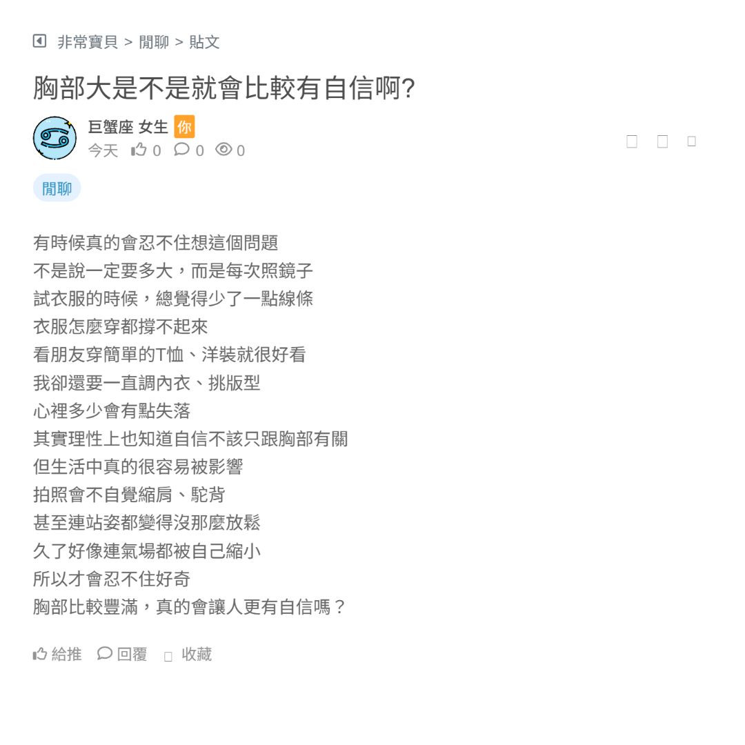 從高中開始我就是屬於比較扁的體型 常常因為沒什麼胸部被同學笑說 正面跟背面一樣 當時覺得很受傷 出了社會後 身邊越來越多女生會去做隆乳(真的很多人) 甚至...