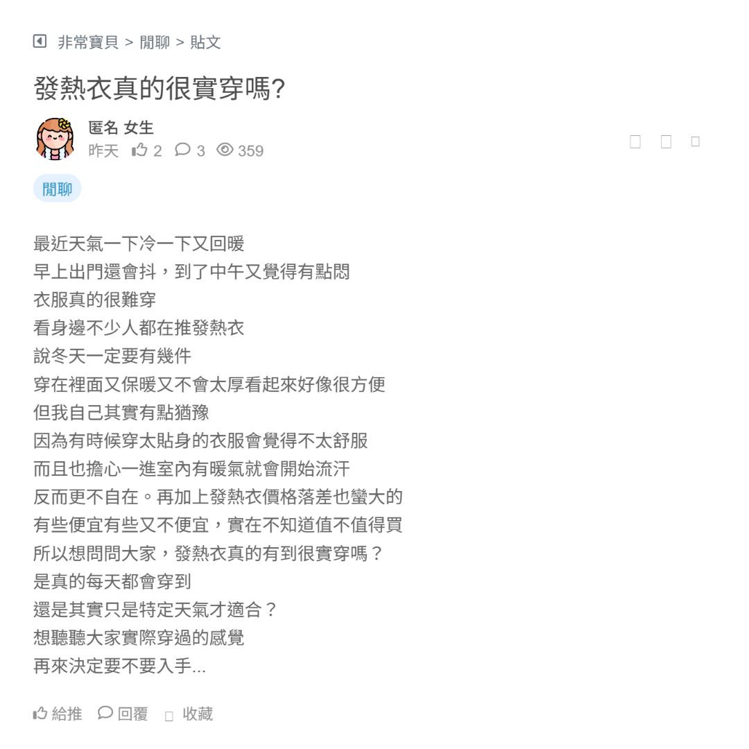所以想問問大家,發熱衣真的有到很實穿嗎?