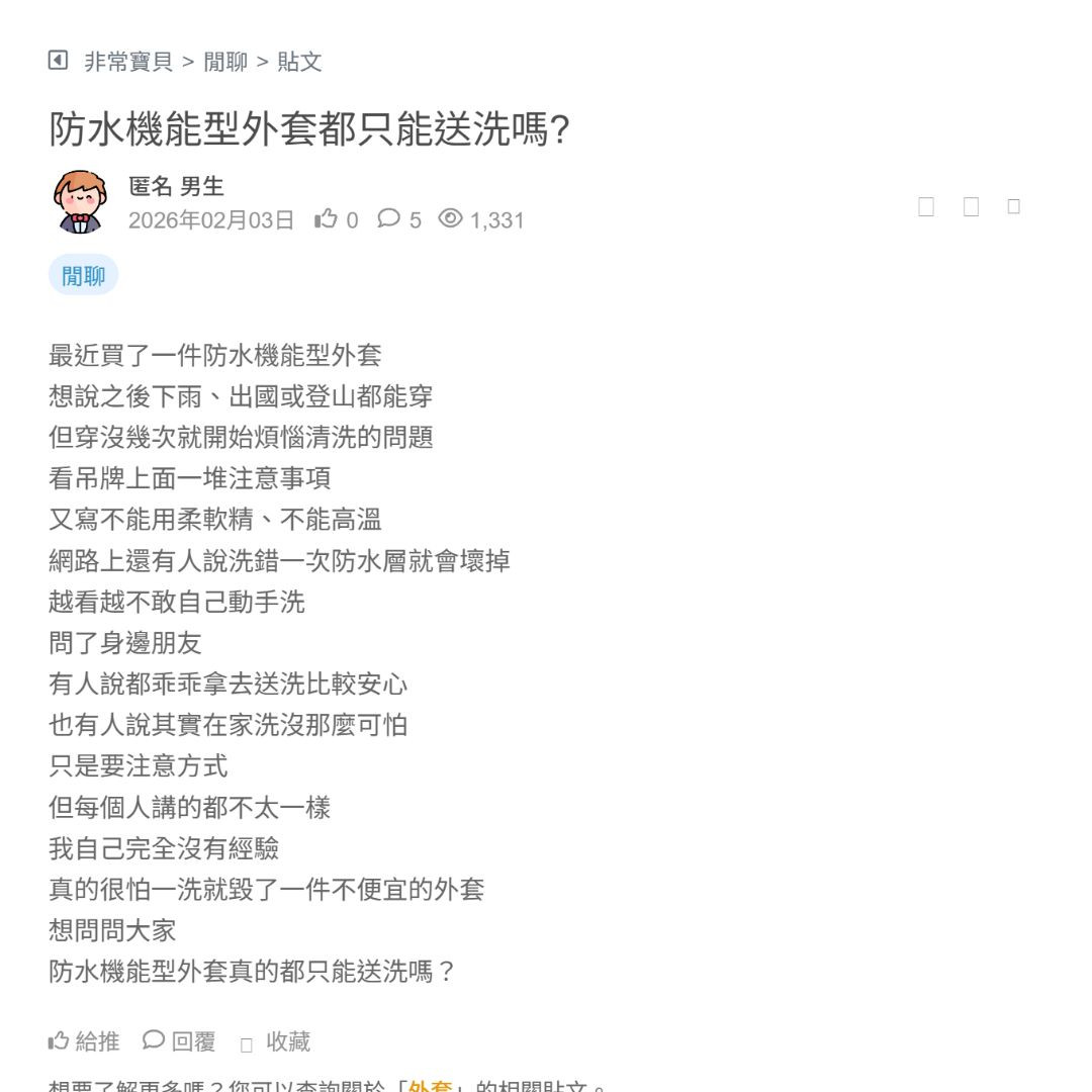 最近在規劃冬天出國行程 目的地會下雪,開始煩惱穿搭問題 身邊有人跟我說羽絨外套穿夠厚就好了 但也有人提醒我 下雪不只是冷,還會濕、會有風 單穿羽絨外套好像不一定撐得住 我自己其實很怕冷 但又不想整個人包到行動困難 而且聽說有些地方室內都會開暖氣 進出室內外溫差很大 如果穿太厚又會熱到流汗,反而更不舒服 所以現... 看更多