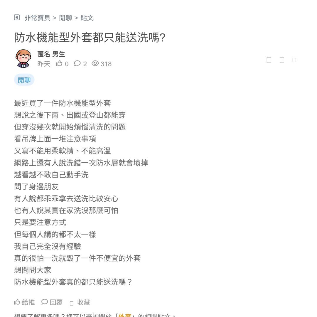 手洗萬一自己沒弄好也可能會破壞到防水材質吧