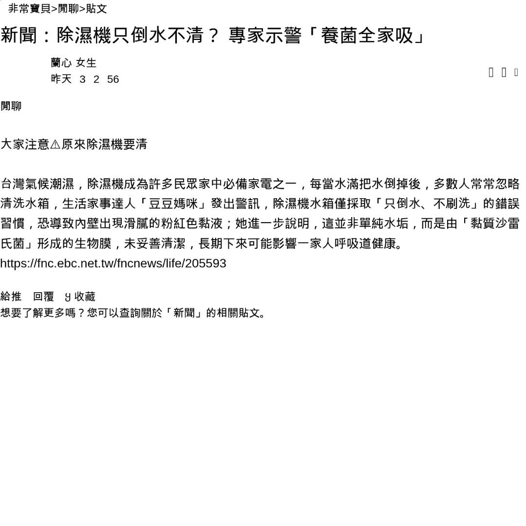 新聞:除濕機只倒水不清? 專家示警「養菌全家吸」