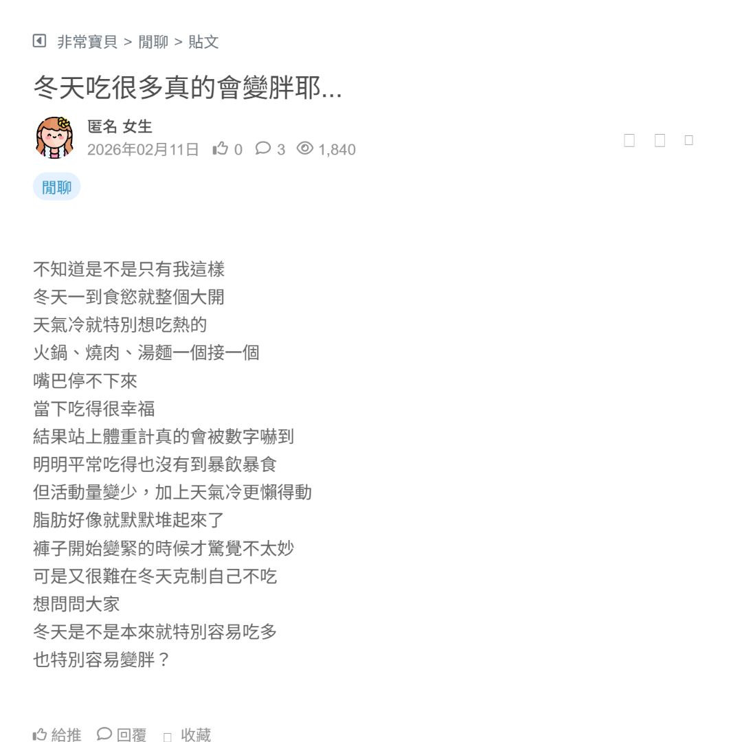 大家有沒有覺得今年冬天特別冷?還是只有我覺得? 明明已經穿了發熱衣+毛衣+大外套,還是凍到不想出門,每天都想躲在被窩裡當一條冬眠的蟲 前幾年冬天好像沒這麼誇張,雖然有時候會降到十度以下,但撐一下還是可以出門 今年不一樣,這波寒流超兇猛,冷起來懷疑人生,風一吹冷到屁屁剉 不懂為什麼女生還能短裙、小可愛+... 看更多