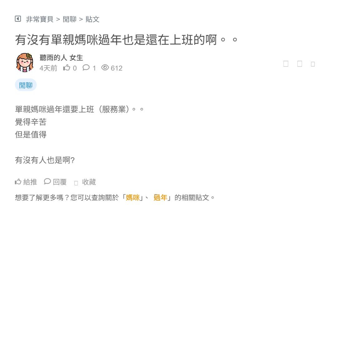 目前我懷孕19周,還不清楚未來是要當職業媽媽還是全職媽媽,心裡是偏向職業媽媽,還不想離職,畢竟在公司上班也超過7年了,再去新環境,重新認識同事跟主管,壓...