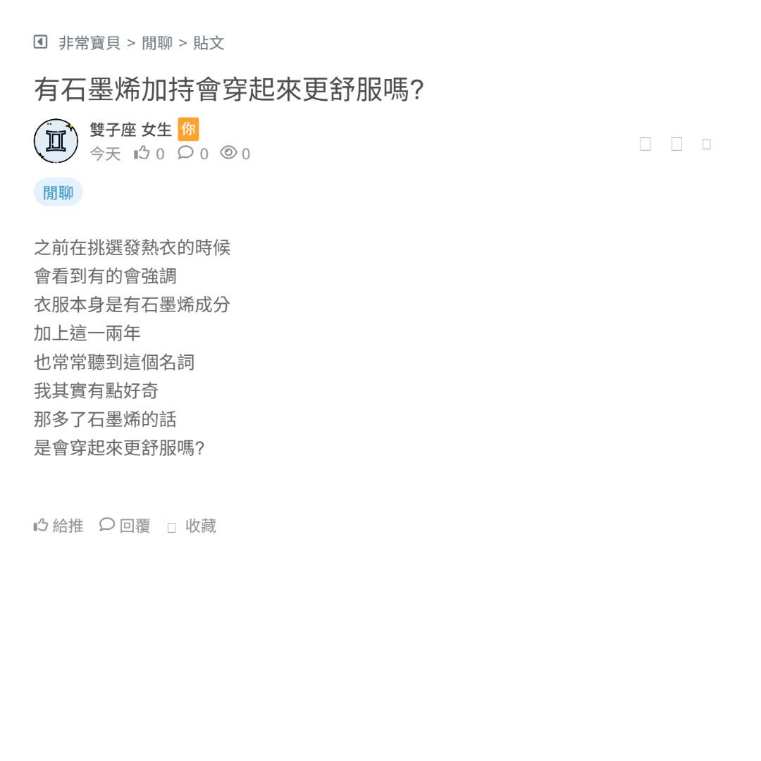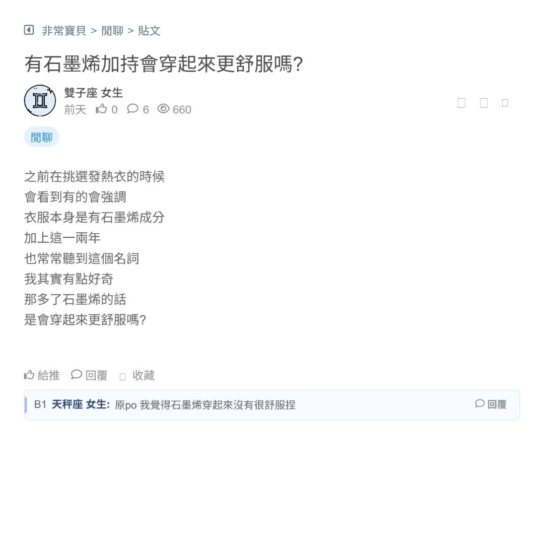我本來之前在挑家裡的床單寢具 那時候就有注意到 所謂的石墨烯材質了 可是很多掛上石墨烯之後 單價都變得有點高 我就下不了手 然後最近因為想買發熱衣 又有看到...