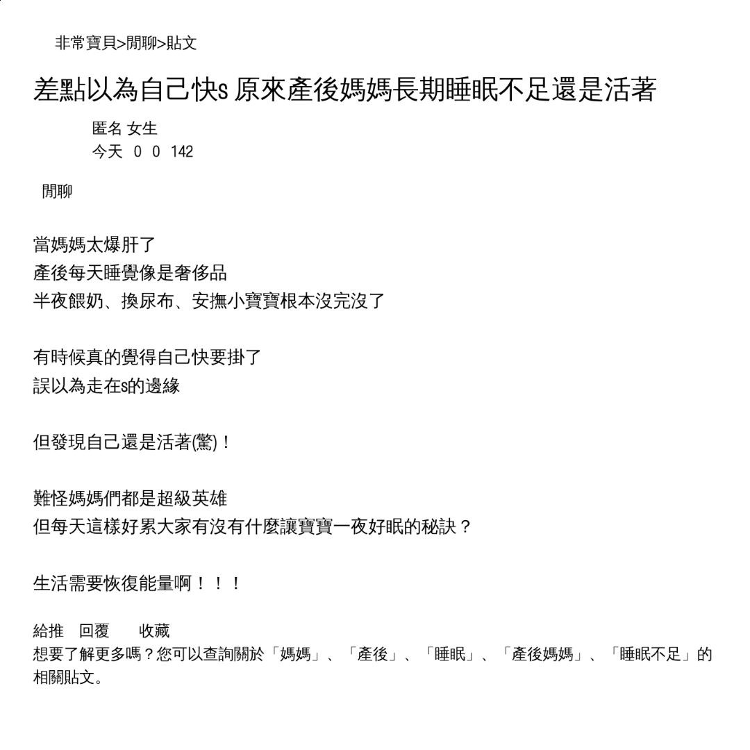 差點以為自己快s 原來產後媽媽長期睡眠不足還是活著