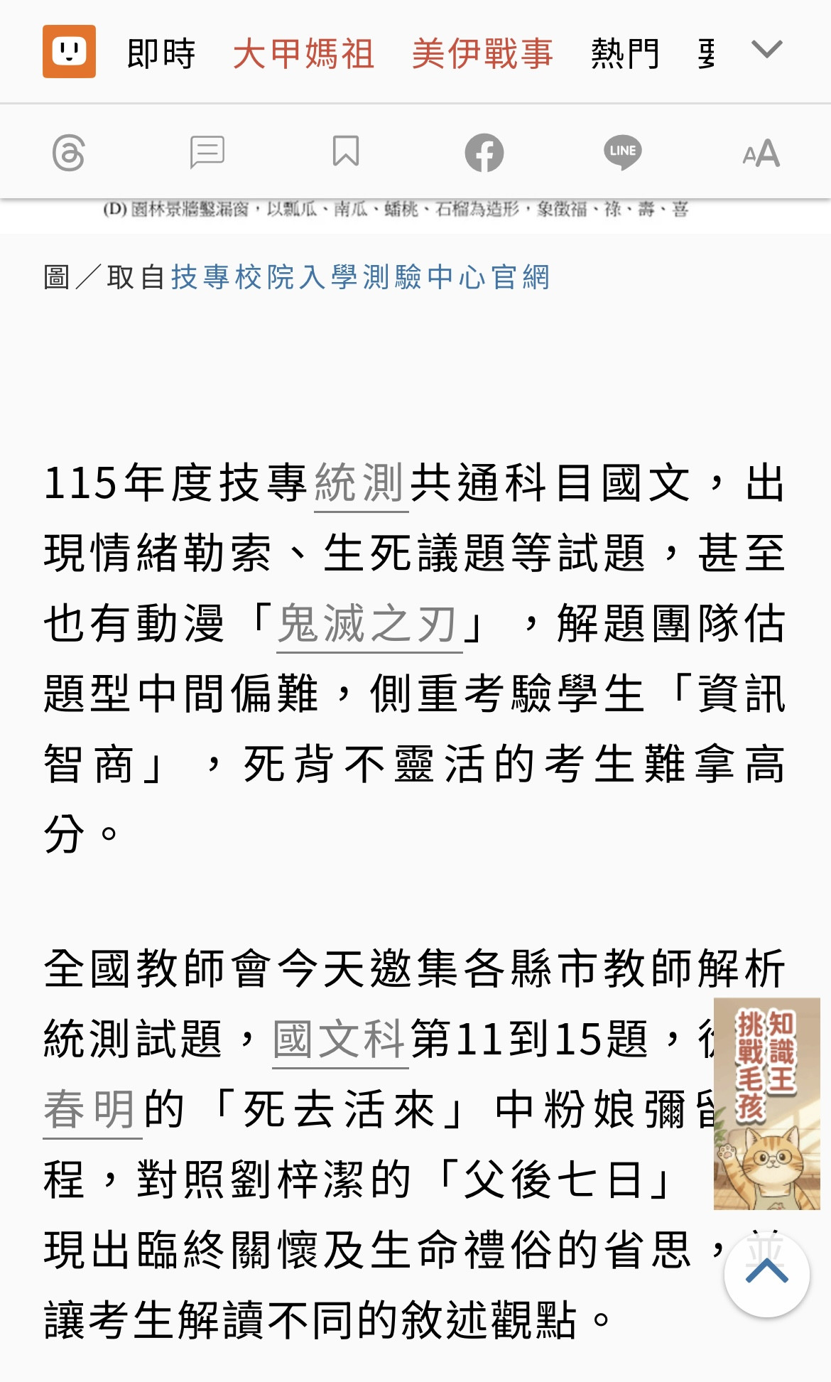哇靠!我真的沒想到115年技專統測的國文會考到《鬼滅之刃》,也太狂了吧!