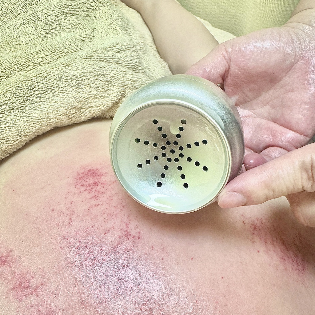 皮膚表層滲出水珠,不要看它超紅,其實溫罐過程不會很痛。