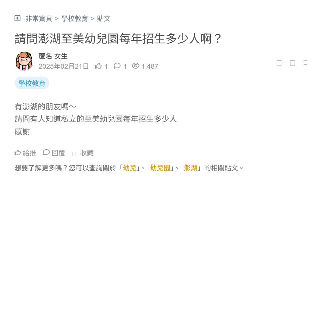 請問有人知道私立的至美幼兒園每年招生多少人