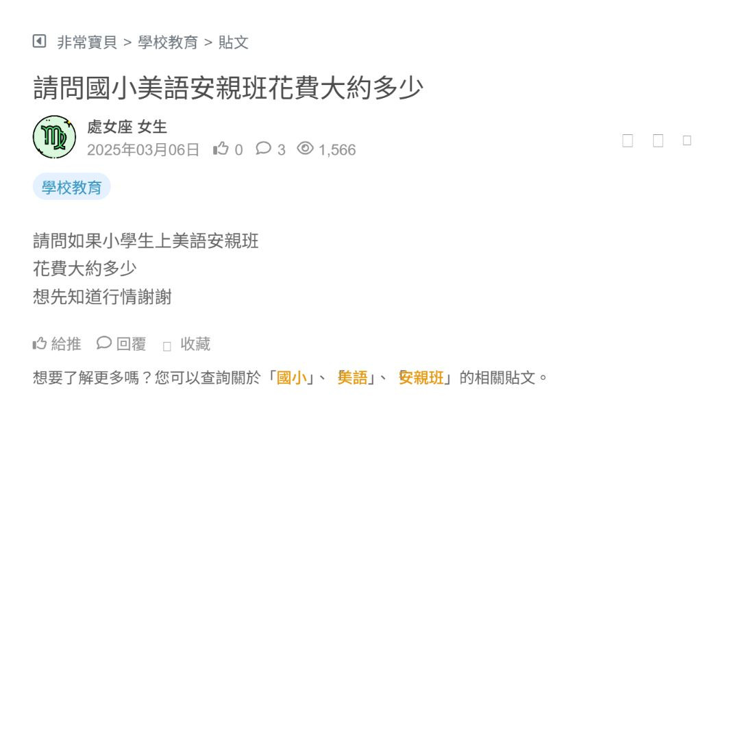 請問各位媽媽 國小一學期的學費有多少呢? 看更多