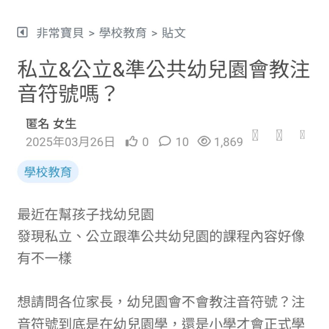 私立&公立&準公共幼兒園會教注音符號嗎?