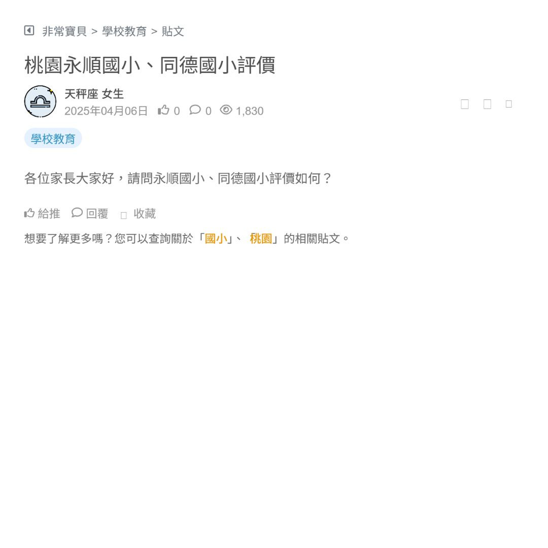 桃園永順國小、同德國小評價