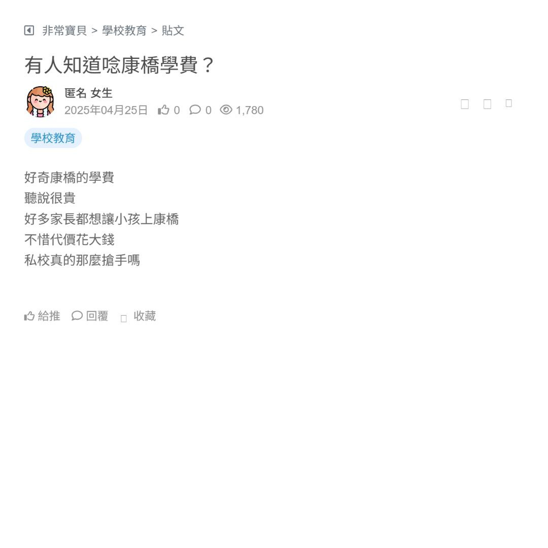 心中一直有個疑惑,康橋到底是不是貴族學校?前幾天有個計程車司機大哥跟我分享他的妹妹很拼就為了讓他女兒上康橋 一直說給他上康橋非常花錢但很值得 聽他講...