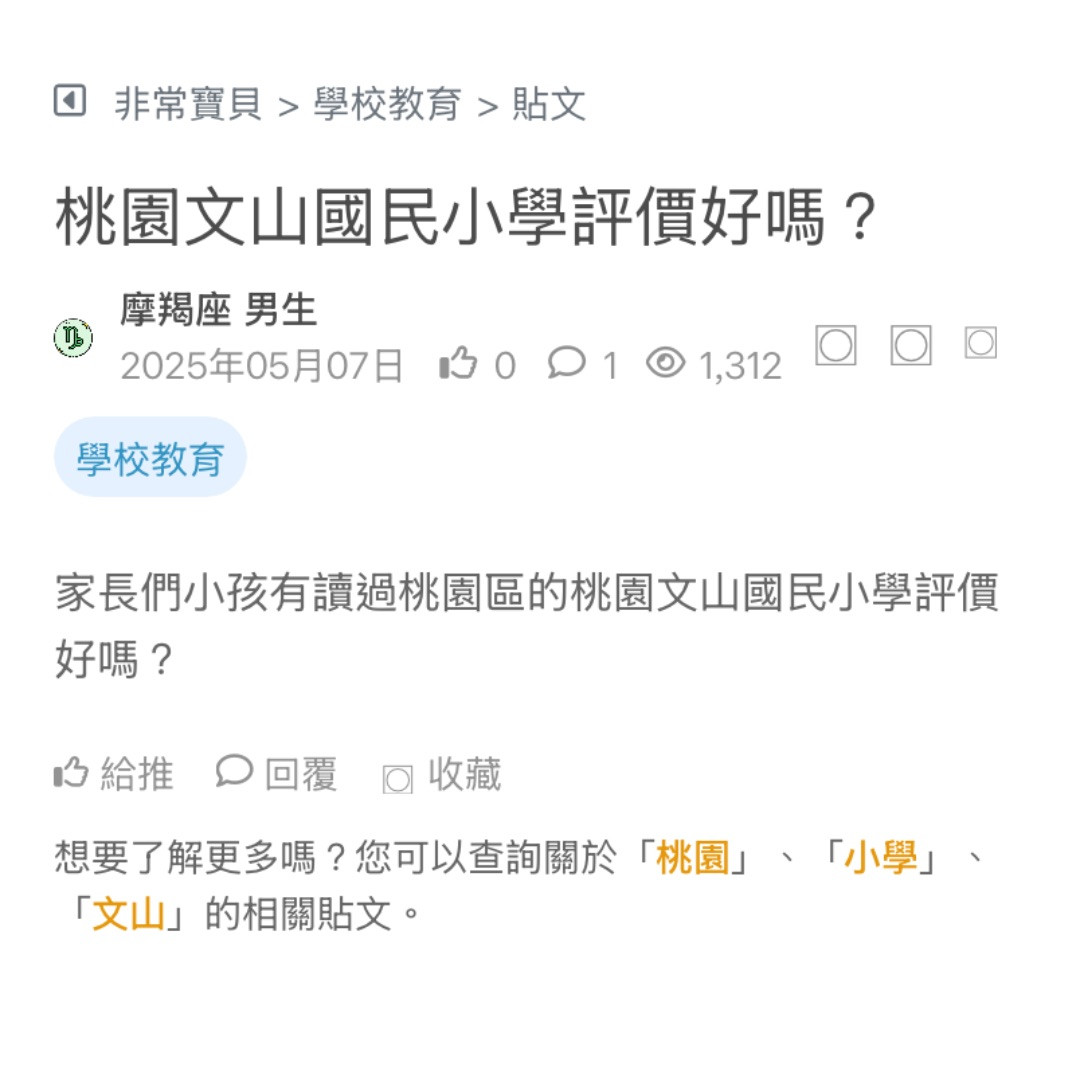 家長們小孩有讀過桃園區的桃園文山國民小學評價好嗎?