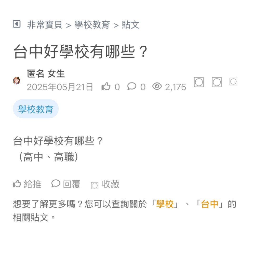請問各位家長台中南區信義國民小學,這間國小好不好🥺老師教學情況如何?整體來看校園風氣怎麼樣,小孩上學念得好嗎?感謝🙏 看更多