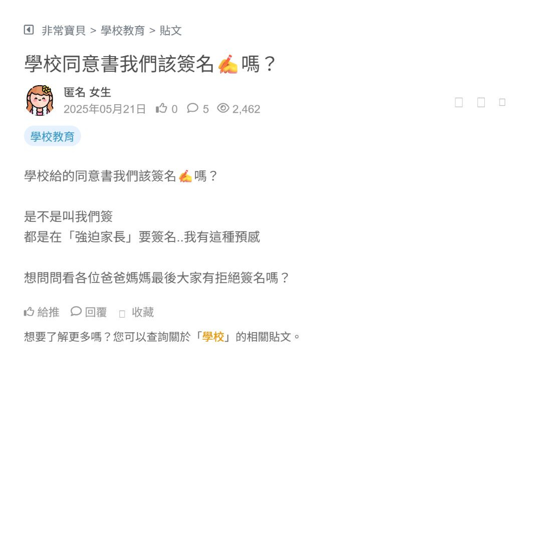 想問問看各位爸爸媽媽最後大家有拒絕簽名嗎?